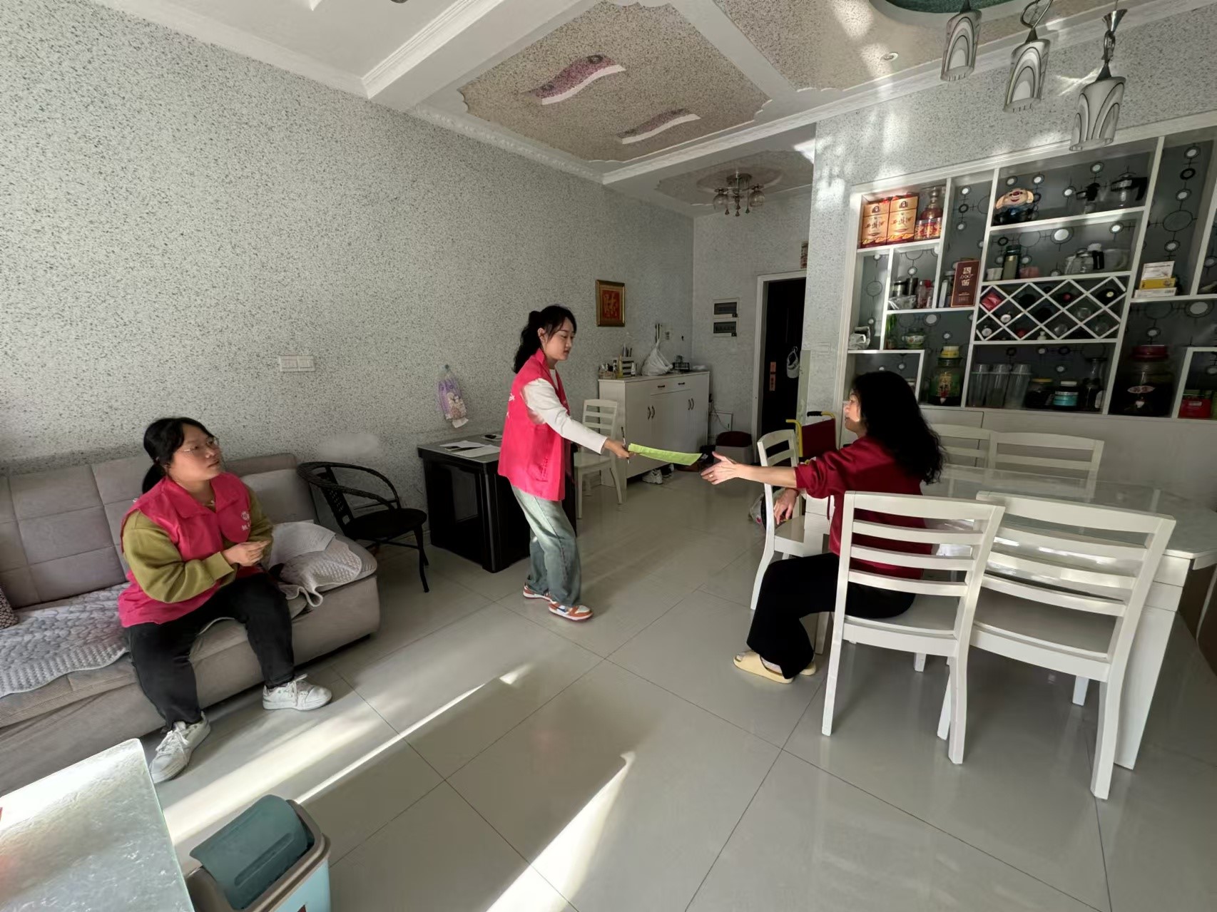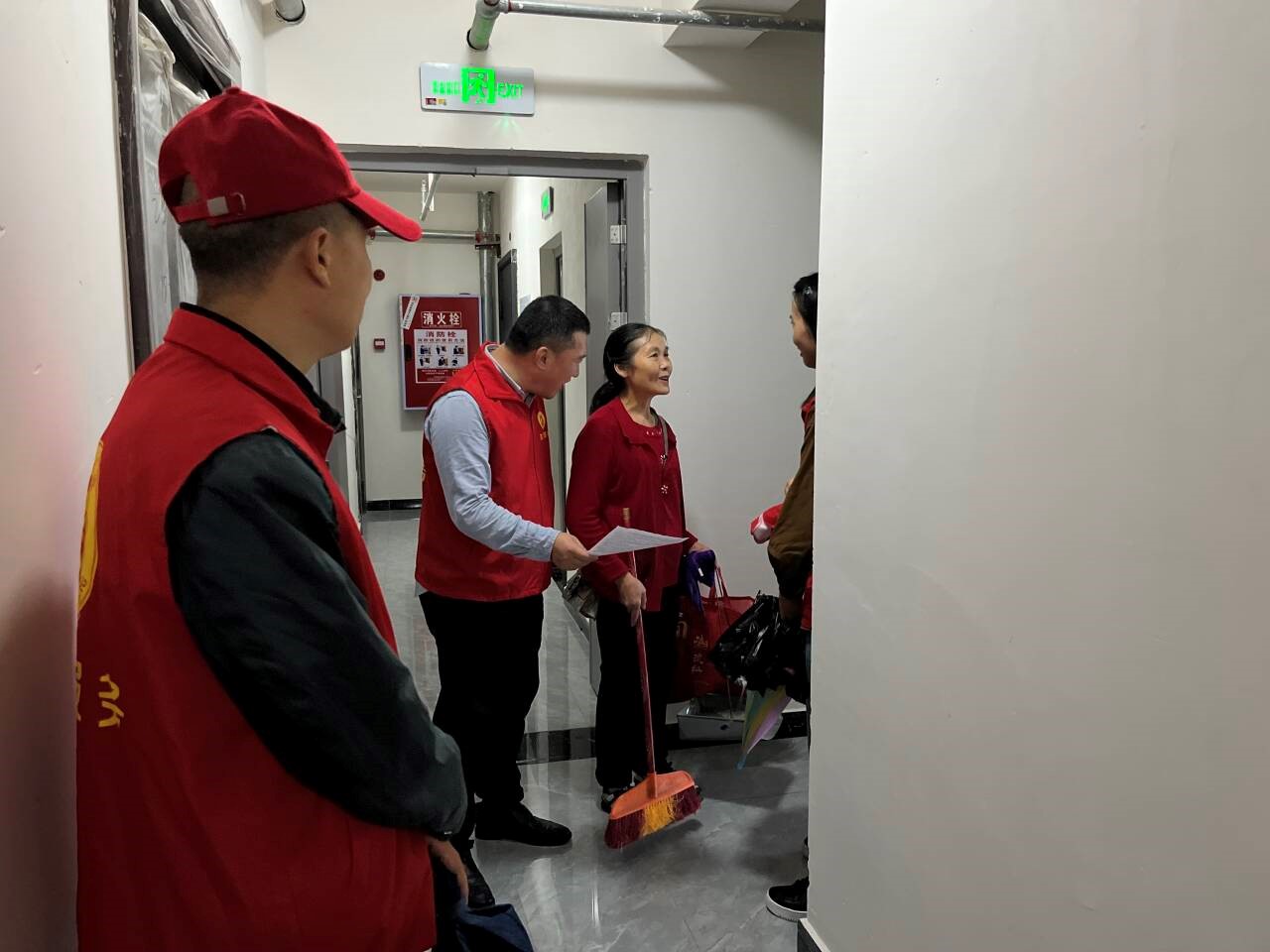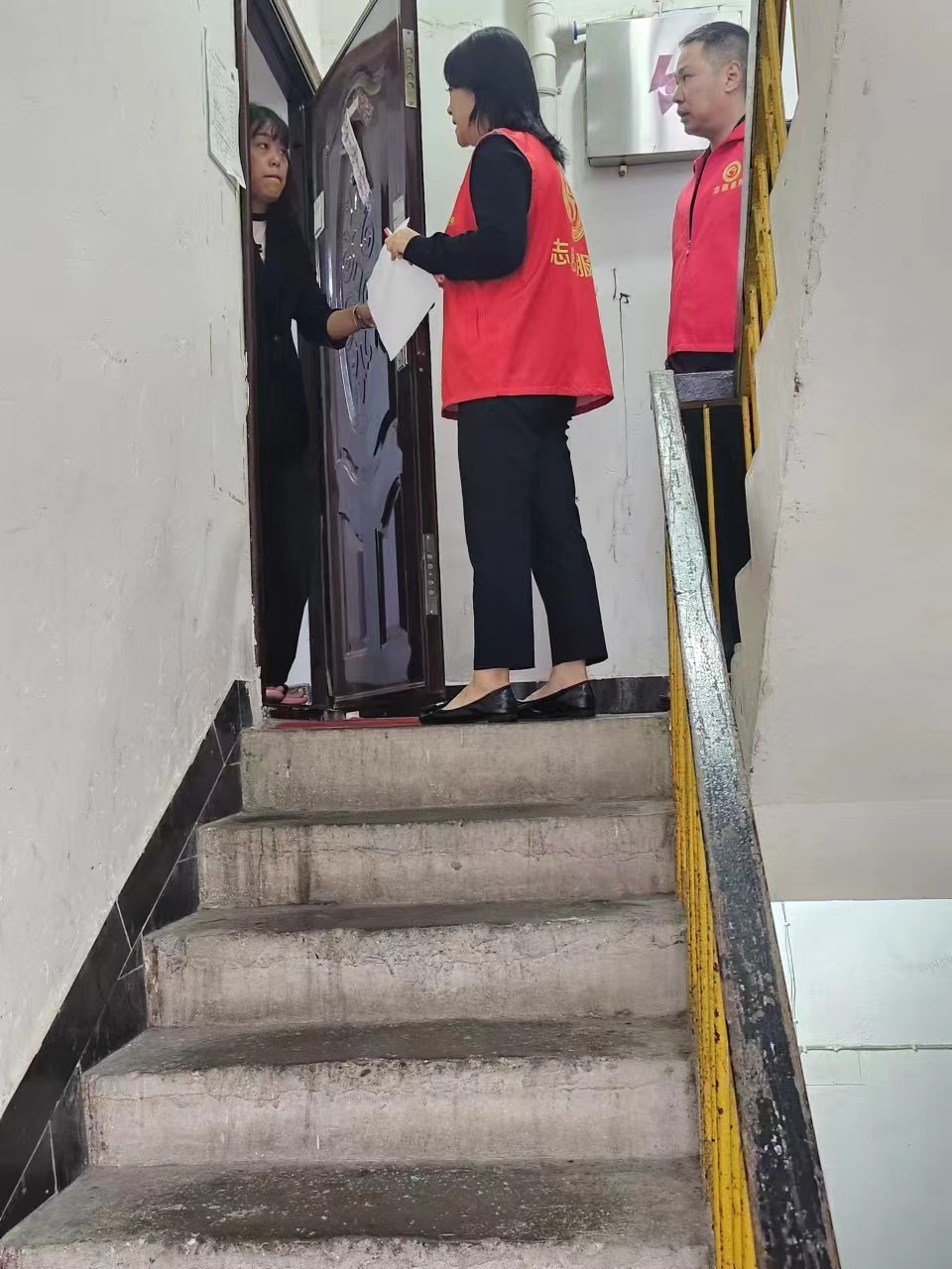 区征拆事务中心中心志愿者入户宣传劝导清除乱堆杂物
