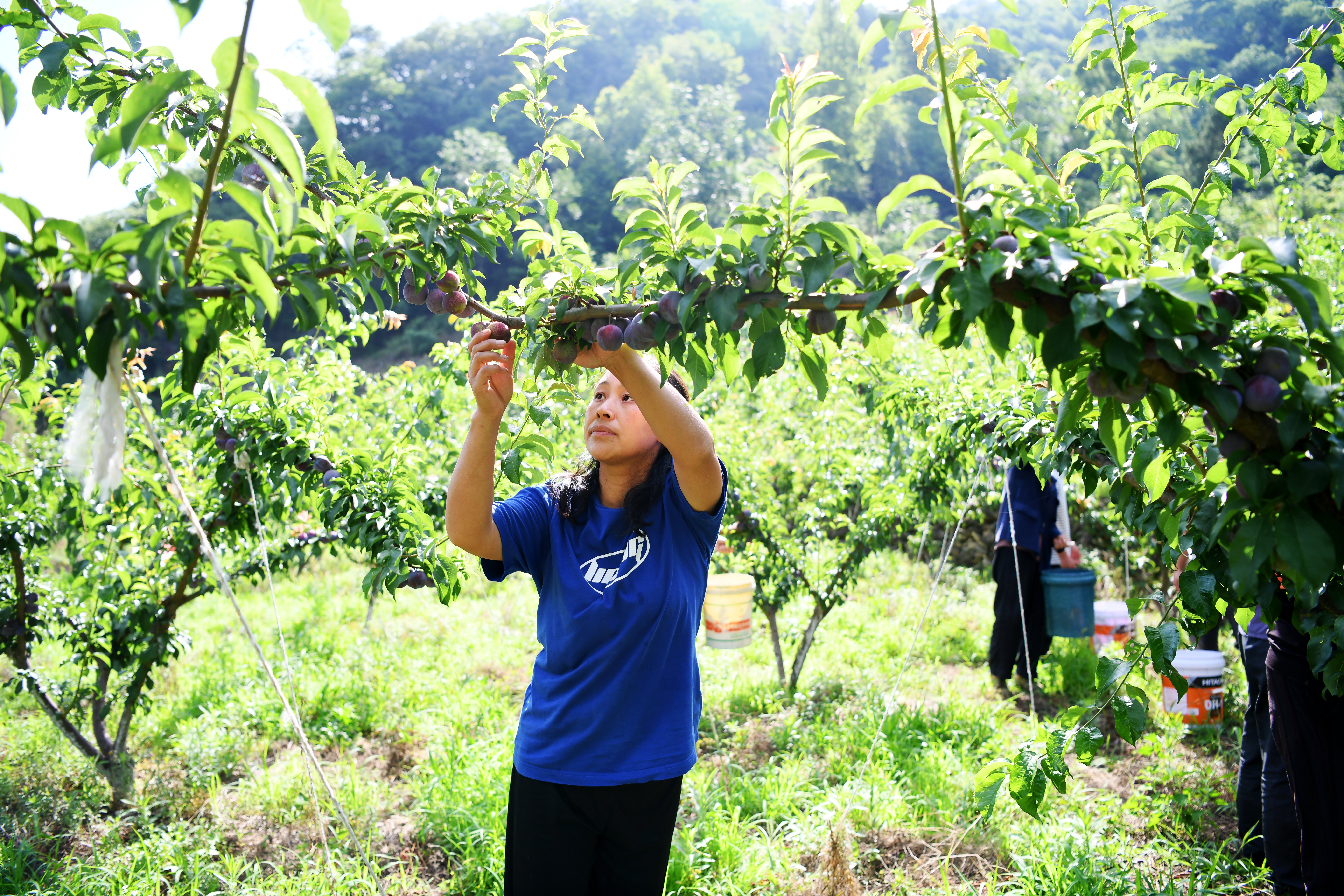 同杨碧春一起采摘、分拣、打包的都是同村的村民。“我们村里种凤凰李的有8户人家,一共60多亩。到了李子成熟的时期,大家互相帮忙,今天你帮我摘,明天我帮你摘。”梧桐村党支部书记张钊介绍,大伙都是在2020年开始种植凤凰李,没想到梧桐村凭借良好的自然条件,让凤凰李在村里“落地生根”,长势一年比一年喜人,成了帮助村民增收致富的“金果果”。