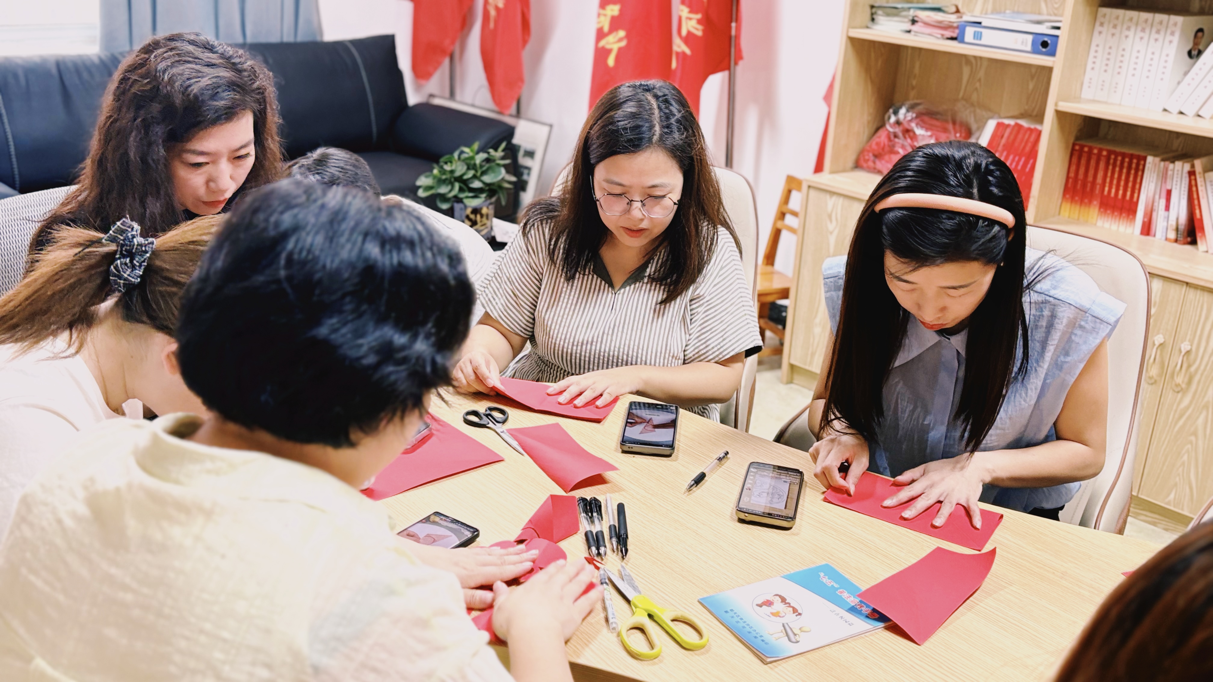 活动现场节日气氛浓郁,参与者中既有技艺娴熟的剪纸爱好者,也有满怀好奇的初学者。大家在七夕节所蕴含的忠贞爱情、家庭和睦、心灵手巧等文化内涵的启发下,积极交流、兴致盎然,纷纷执起剪刀与红纸,细心剪制属于自己的作品。