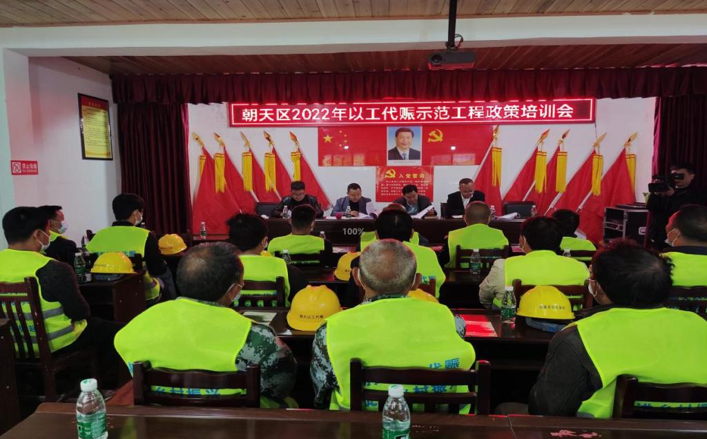 5月13日,朝天区2022年以工代赈示范工程项目开工仪式在李家镇永乐村举行。区以工代赈事务中心、李家镇党委政府、项目村两委、项目理事会、务工人员代表等40余人出席仪式。开工仪式结束后,区以工代赈事务中心与李家镇政府,组织项目村组干部、群众代表、项目理事会人员等,召开了以工代赈政策培训会议,发放了以工代赈政策百问百答宣传小册40余册。