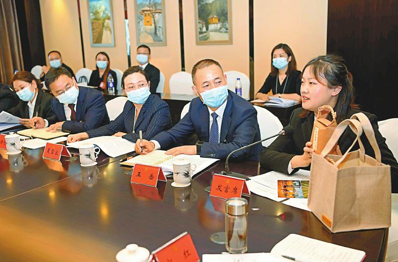 5月28日,分组讨论会上,费亚代表不仅带来了家乡眉山市丹棱县仁美镇雄义村产业发展的实景图片,还带来了村上种植的优质水稻。记者 华小峰 摄