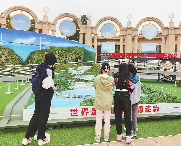 位于室外展区的“世界最大清洁能源走廊”沙盘吸引观众驻足。 余国鹏
