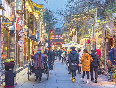 绿色、智慧、人文城市建设有序推进,自然景观和文化特色保护更为有力。图为保留了历史特色的四川省成都市锦里古街。