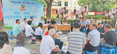 高度重视诉源治理工作,抓前端、治未病,将矛盾纠纷化解在初期。图为2020年6月,江苏省无锡市惠山区长安街道金惠社区召开“有事好商量”基层协商议事会,解决小区停车难问题。