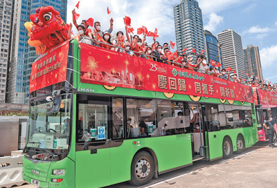 2022年6月,香港各界联合会主办的“庆祝香港回归祖国25周年巴士巡游”活动隆重启动,香港街头充满喜庆氛围。