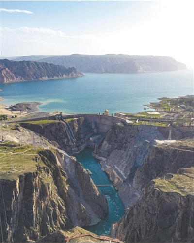俯瞰龙羊峡水电站。位于青海海南藏族自治州共和县和贵南县交界处的龙羊峡水电站,是黄河上游龙青段规划的第一座大型梯级水电站。