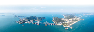 航拍连接福银高速的平潭海峡公铁大桥。福银高速是国家高速公路网中一条承东启西、贯通东南至西北的运输大动脉。