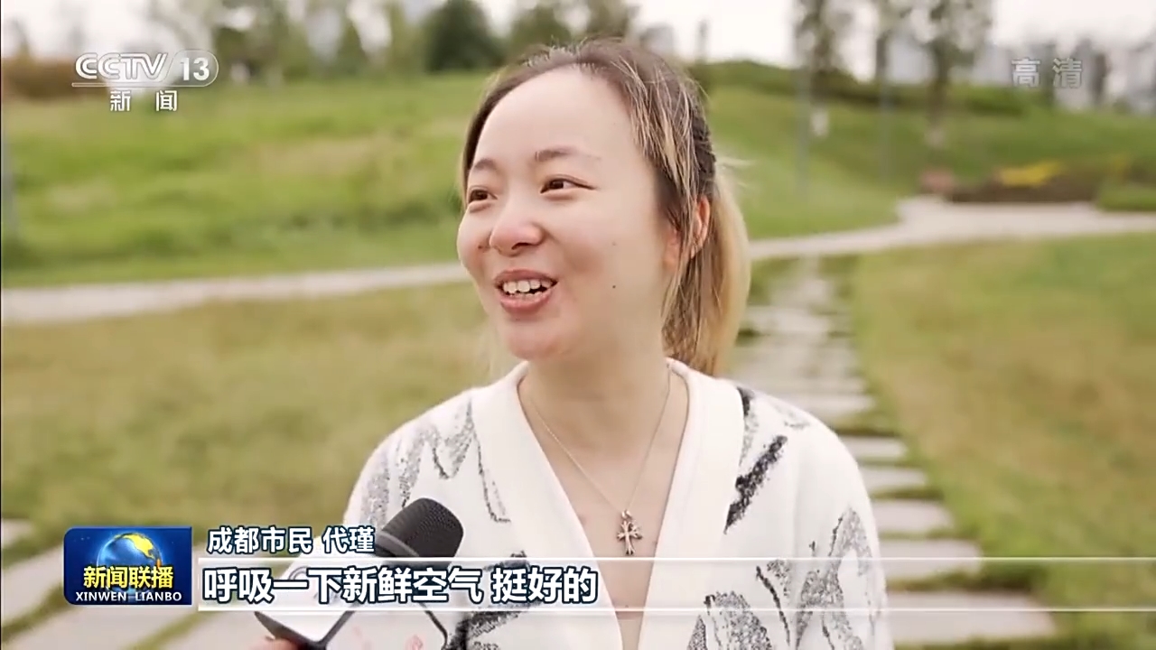 成都市民 代瑾:生态环境比较好,呼吸一下新鲜空气,挺好的,特别的宜居,小朋友玩得也很开心。