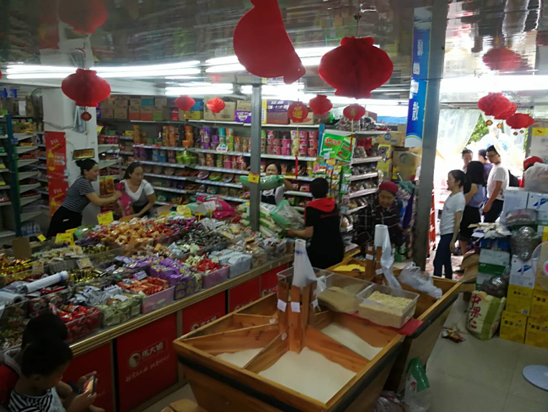 图为党员干部帮助商铺抢运物资