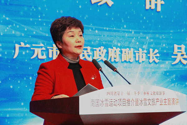 吴桂华向活动的举办表示热烈祝贺,向各位领导、各位嘉宾的到来表示诚挚欢迎,向关心支持广元文化旅游事业发展的朋友们表示衷心感谢。她指出,近年来,市委、市政府认真贯彻习近平新时代中国特色社会主义思想,高度重视旅游产业发展,突出生态康养主题、全域旅游主线、提质增效主调,奋力建设中国生态康养旅游名市和大蜀道国际旅游目的地核心区,全市旅游经济持续快速增长,“绿色广元、康养之都”的品牌影响力全面提升。吴桂华希望,各界朋友以节为媒、以节会友,深入交流、畅谈合作,共同谱写冰雪产业发展新篇章。同时,诚邀各位来广元观光旅游、投资兴业、共叙友谊、共谋发展,携手开创更加美好的明天。