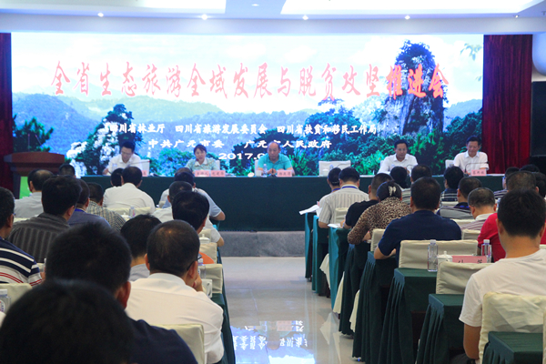 成都市、阿坝州、洪雅县、毕棚沟生态旅游区、仁寿县化石村分别围绕生态旅游全域发展,生态旅游助推脱贫攻坚作交流发言。