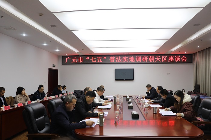 在随后召开的座谈会上,李兆南介绍了朝天区“七五”普法工作情况及特色亮点。调研组对朝天区“七五”普法工作给予充分肯定,认为朝天区委、区政府将习近平总书记全面依法治国新理念新思想新战略深入地贯彻落实到“七五”普法工作中,取得了明显成效。调研组要求,要统筹做好“八五”普法规划,持续开展普法工作,把学习宣传贯彻习近平法治思想作为全民普法的重要政治任务,抓好《宪法》《民法典》等重点法律法规宣传,推动“法律七进”工作提档升级,积极探索三治融合新经验和新做法,为朝天基层社会治理夯实法治基础。