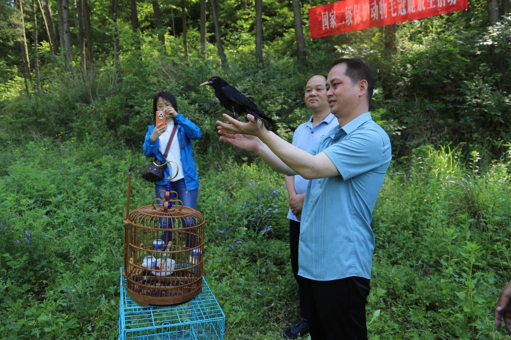 5月30日,国家二级保护动物毛冠鹿放生活动在朝天区曾家镇举行。放生现场,市、区林业部门相关负责人员一道,将毛冠鹿、红嘴山鸦成功放归自然。