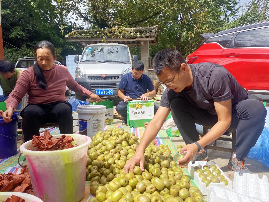 猕猴桃成熟季,董中垒和云雾山镇中坝村群众一起分拣猕猴桃