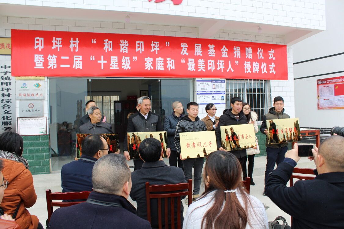 “不得了啊,李书记,我跟儿子说了,节后不去宁波啦,就在咱们村,当印坪老百姓太幸福啦!”2月9日下午,参加完村上“和谐印坪”发展基金捐赠仪式和第二届“十星级”家庭和“最美印坪人”授牌仪式的老党员王兴志拉着省委编办驻村“第一书记”李江桥的手,激动地说。