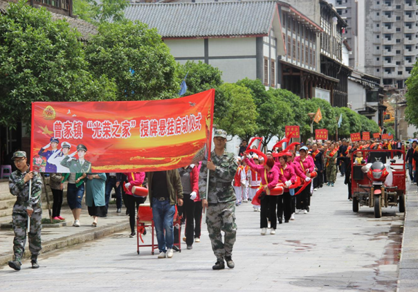 6月28日,曾家镇在民俗文化广场举行为烈属、军属和退役军人等家庭悬挂光荣牌工作启动仪式,旨在进一步弘扬拥军优属优良传统,传递在以习近平新时代中国特色社会主义思想指引下,党和政府对现役和退役军人的关爱。