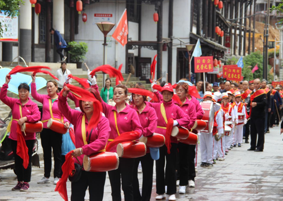 在一片响亮的锣鼓声中,烈属、军属、退役军人及家属戴着绶带和红花从康养广场行至民俗文化广场,走过之处行人纷纷驻足观望,并投去敬意和祝福。