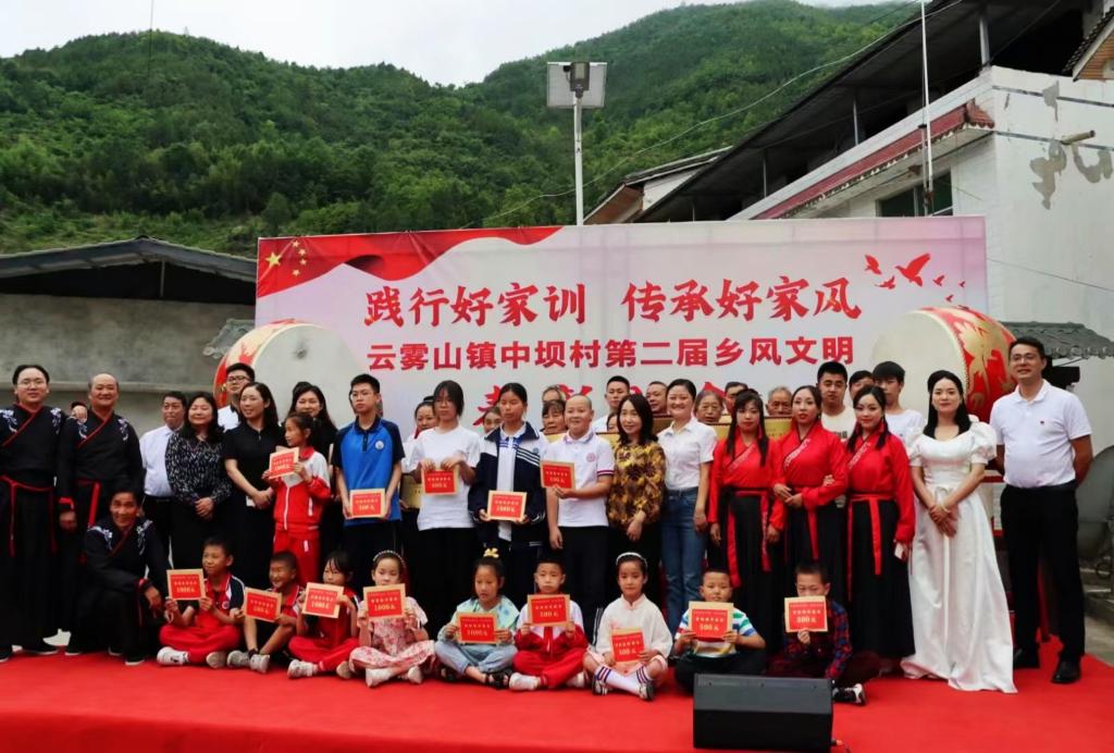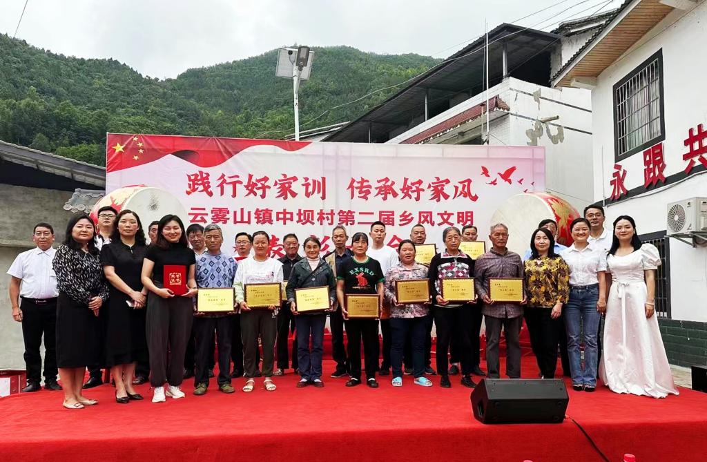 “以‘家风’带‘乡风’,以‘家风’促‘作风’,以‘家风’建‘新风’。”6月16日,朝天区云雾山镇中坝村举行第二届“践行好家训 传承好家风”乡风文明表彰大会,旨在营建修身自律、崇德向善、礼让宽容、家庭和睦的道德风尚,为推进创建“和谐、富足、干净、舒适”的特色中坝村提供精神动力。
