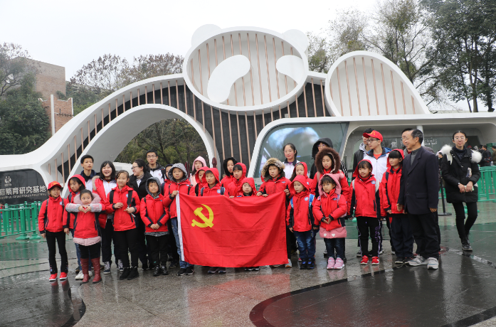在成都大熊猫繁育研究基地,孩子们与大熊猫、孔雀零距离接触,在亲近大自然的同时,又增长了知识。