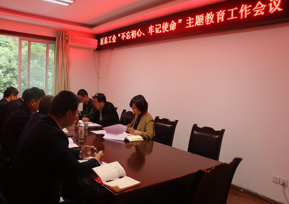 会议传达了区委七届八次全会暨全区“不忘初心、牢记使命”主题教育工作会议精神,并结合区总工会工作实际,就工会系统开展主题教育进行动员部署。