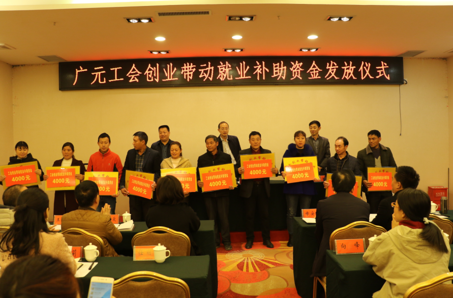 仪式上,许明烽通报了广元工会创业带动就业工作开展情况。现场为朝天区30名创业者举行了创业带动就业帮扶项目授牌仪式,并发放创业补助资金12万元。来自朝天区宣河镇兴国肉兔养殖农场和宣河镇珠生家庭农场两名创业者分别进行了发言,纷纷表示要珍惜机遇,把握市场,用好资金,为广大创业者做出榜样,为广大职工奋力争光,为全市经济社会发展贡献力量。