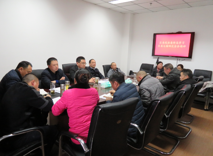 1月18日,区委常委、区委政法委书记李绍兵组织召开区委政法委机关全体干部职工会议,全面传达学习区委七届四次全会精神。