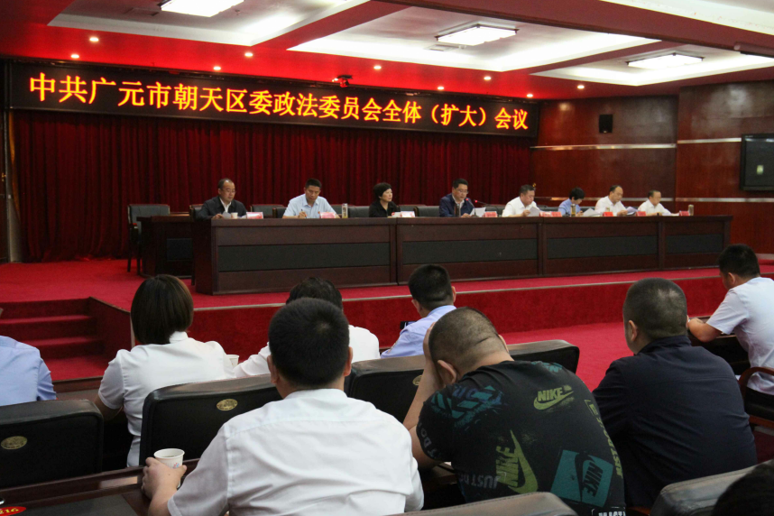 5月31日下午,中共广元市朝天区委政法委员会全体(扩大)会议召开。会议旨在深入传达学习习近平总书记在中央政法工作会议上的讲话和《中国共产党政法工作条例》精神,认真贯彻落实中央、省委、市委政法工作会议精神,总结2018年工作,安排部署2019年工作。