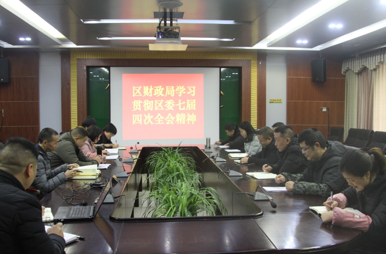 1月18日,区财政局召开干部职工大会,传达学习贯彻区委七届四次全会精神,并对今后一个阶段财政系统如何贯彻落实区委七届四次全会精神作了安排部署。