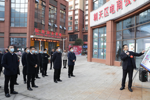 在朝天区电商公共服务中心和朝天区电商物流集配中心,与会人员了解了电商公共服务中心和物流集配中心的区域布局和服务功能,以及我区电子商务的发展历程,听取电商服务助力乡村振兴的情况介绍。2020年我区坚持“消费促升级”,农村电商快速发展,建成朝天电商公共服务中心和12个乡镇电商服务站,103个村级物流配送服务点,完成10个农商对接示范基地建设,物流配送体系全面形成。2020年,全区网络销售额达到1.2亿元。全年服务增加值增速位居全市第一。