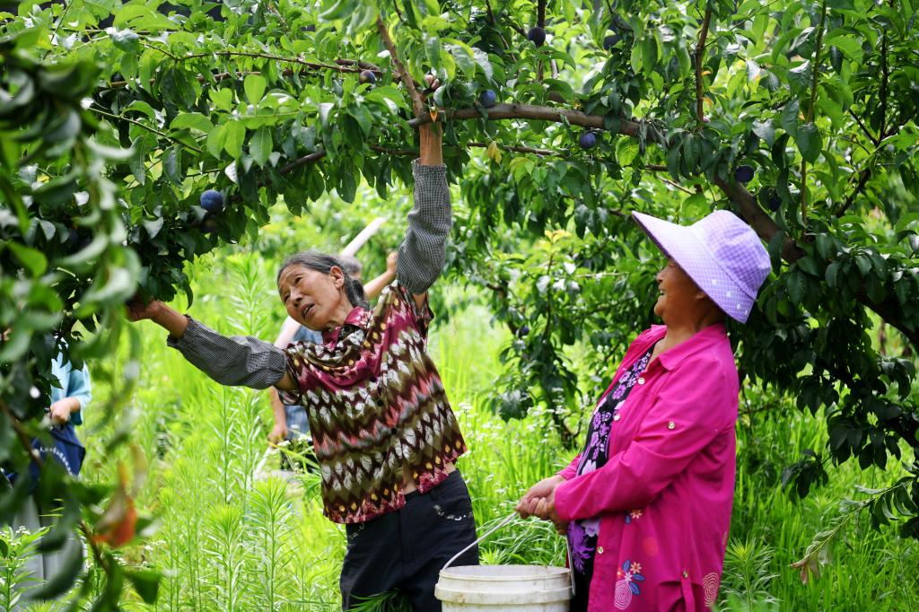 生态有机“凤凰李”,是助农增收的“致富果” 。在园区常年务工的68岁何本林和老伴一早就带上手套,进入园区开始采摘。“除草、施肥、压枝、疏果……都是比较轻松的手上活路。”何本林和老伴仅在园区务工一项就收入3万多元。