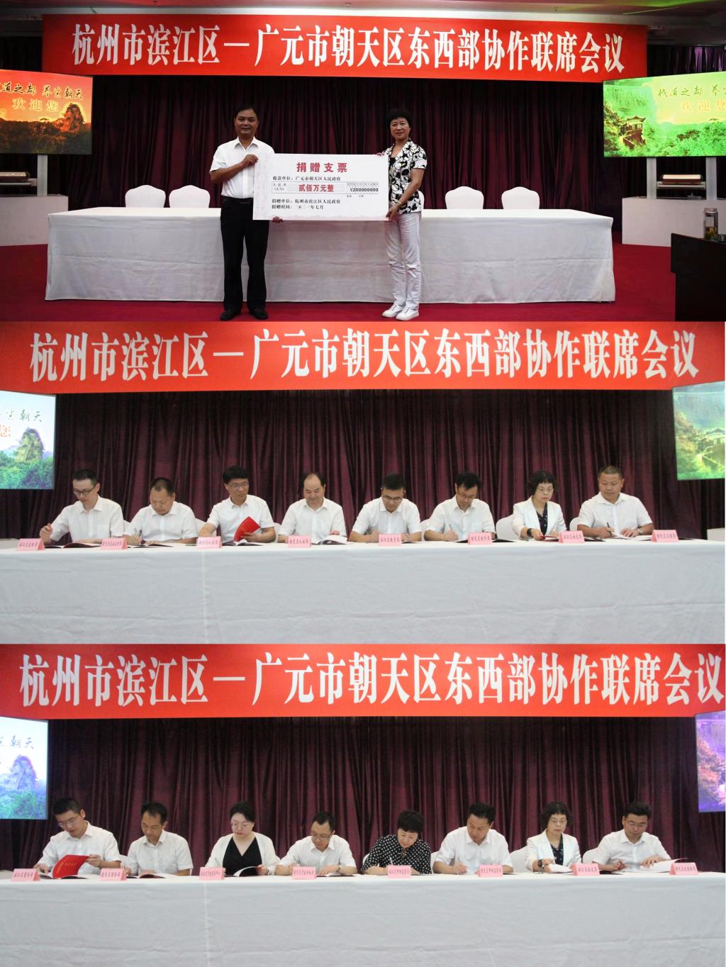 滨江区领导周建杭、余静漪,朝天区领导张开翅、甘兴礼、苏科年、戴灿东、邝庆林、李治成、杨金军、柴松林,两地区级相关部门、乡镇主要负责人及滨江区支援朝天的党政干部、专业技术人才参加活动。