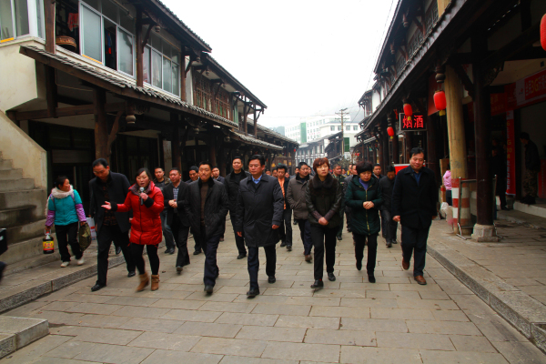 在朝天城区,与会人员仔细聆听朝天城市建设规划思路,感受我区统筹城乡的巨大变化和喜人成绩。2012年,我区始终坚持统筹城乡发展战略,牢固树立经营城市理念,按照“北扩西拓,南连东进”的城区发展布局,坚持旧城改造和新城开发联动,加快中心城区建设,草房沟新区开发签订投资协议,“八路一桥一厂”、明月峡景区服务一条街等项目开工建设,东升国府、明月水岸等城市综合体全面竣工,新开发商住房8.5万平方米,城市品位、人气、商气不断提升。中子、羊木等重点集镇实现提质扩容,曾家、平溪、青林等重点集镇风貌塑造全面完成,高标准、高质量、高水平打造了沙曾平百里新农村示范片。全区城镇化率达27%,增长2.7个百分点。城乡基础设施进一步完善,新型城镇化进程进一步加快。