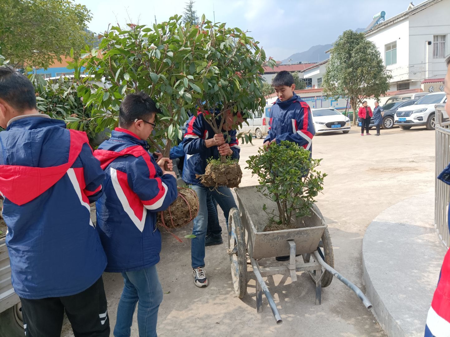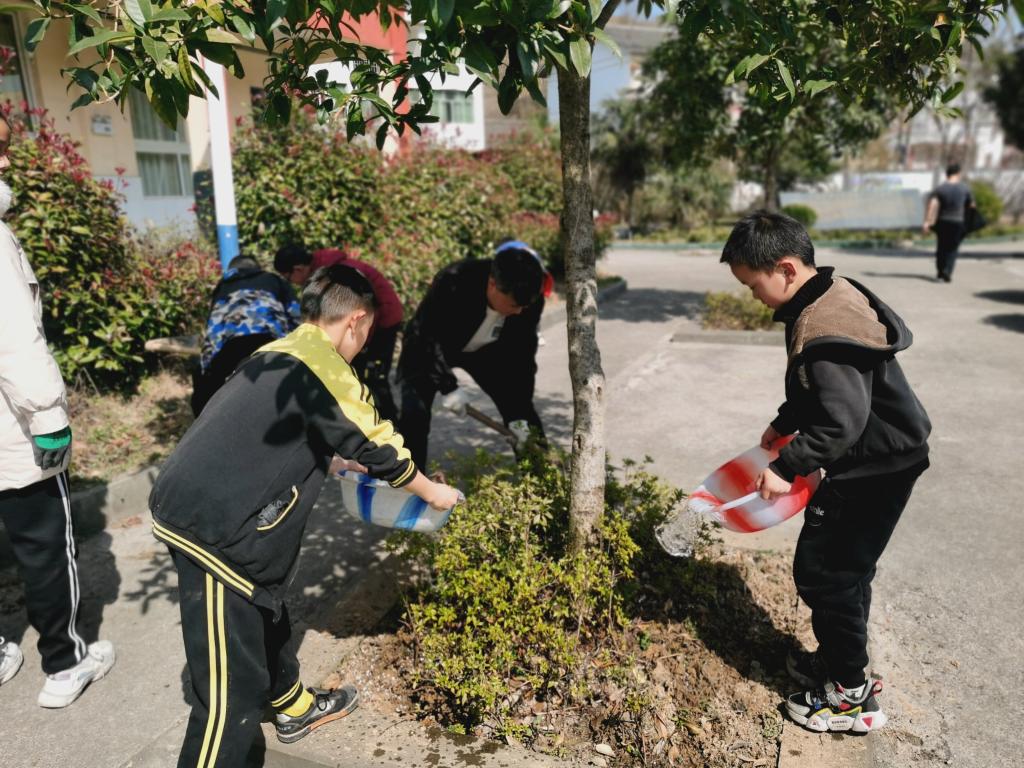 播下一点绿色,收获一片绿意。全区各学校植树现场,大家热情高涨,争当“园艺工程师”,有的扶树,有的培土,有的夯实,齐心协力栽下了一棵棵树苗,现场一片热火朝天的劳动景象。