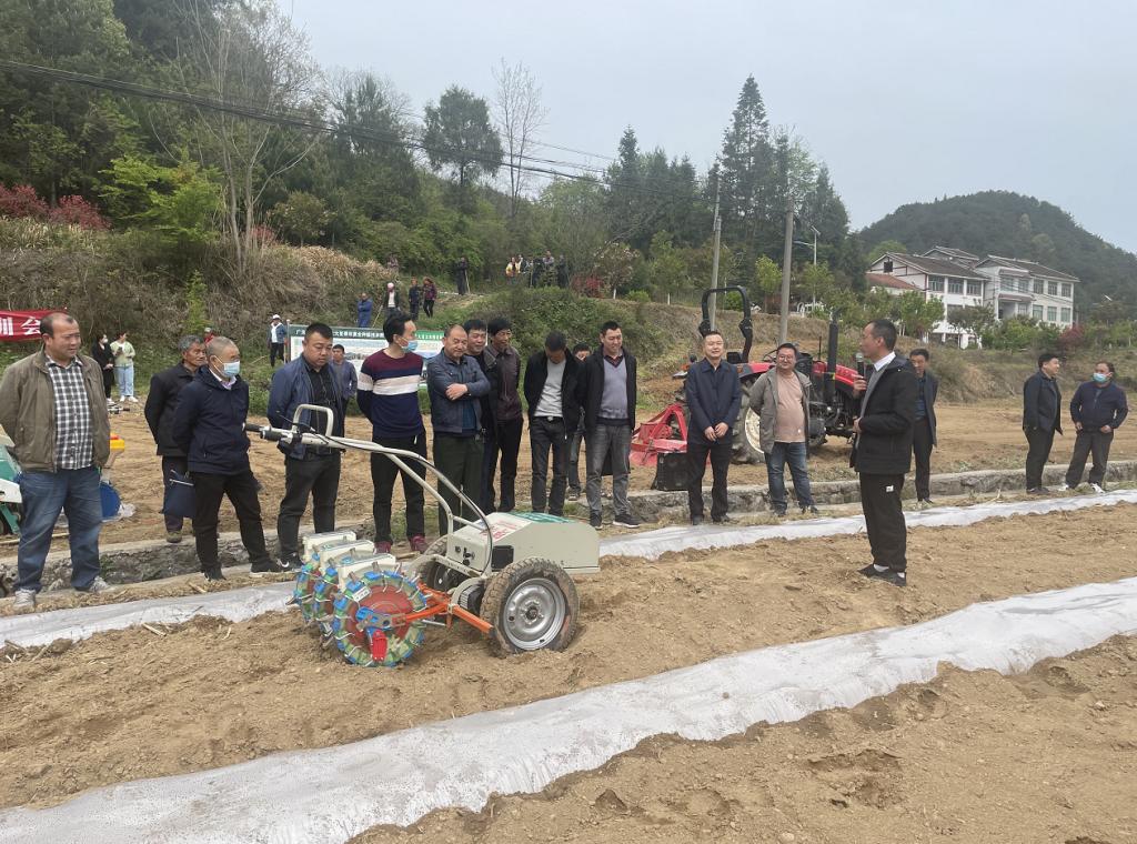 在临溪乡大豆玉米带状复合种植区级示范带,农机专家对电动手扶式大豆玉米一体化播种机、手提式多功能播种机等机具的结构及功能、操作要领进行了详细讲解培训,并指导村民进行了现场操作。在随后进行的种植机具发放仪式上,乡镇村组代表与农机公司签定购销合同,现场领取相应的农机设备。