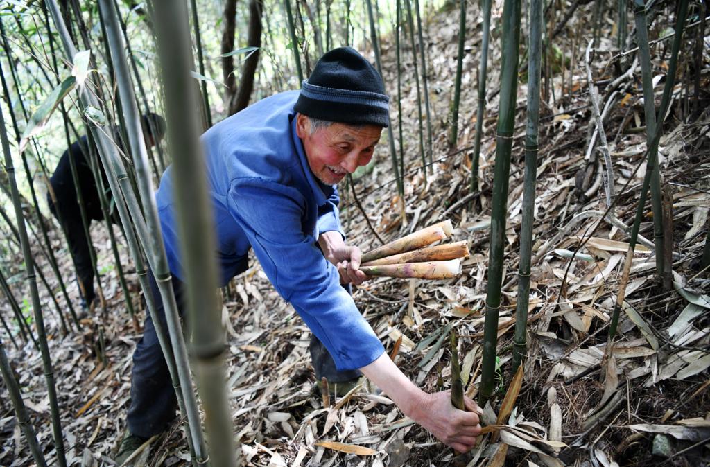 以前由于交通不便没有商贩收购,大尖山村的村民们要把笋子背到城里去卖。“劳动成本非常大,收入却非常低,后来很多人懒得去卖了,守着金山银山,却变不成钱。”张德军说,“现在好了,由合作社统一收购,去壳后一斤可以卖到5—6元。”