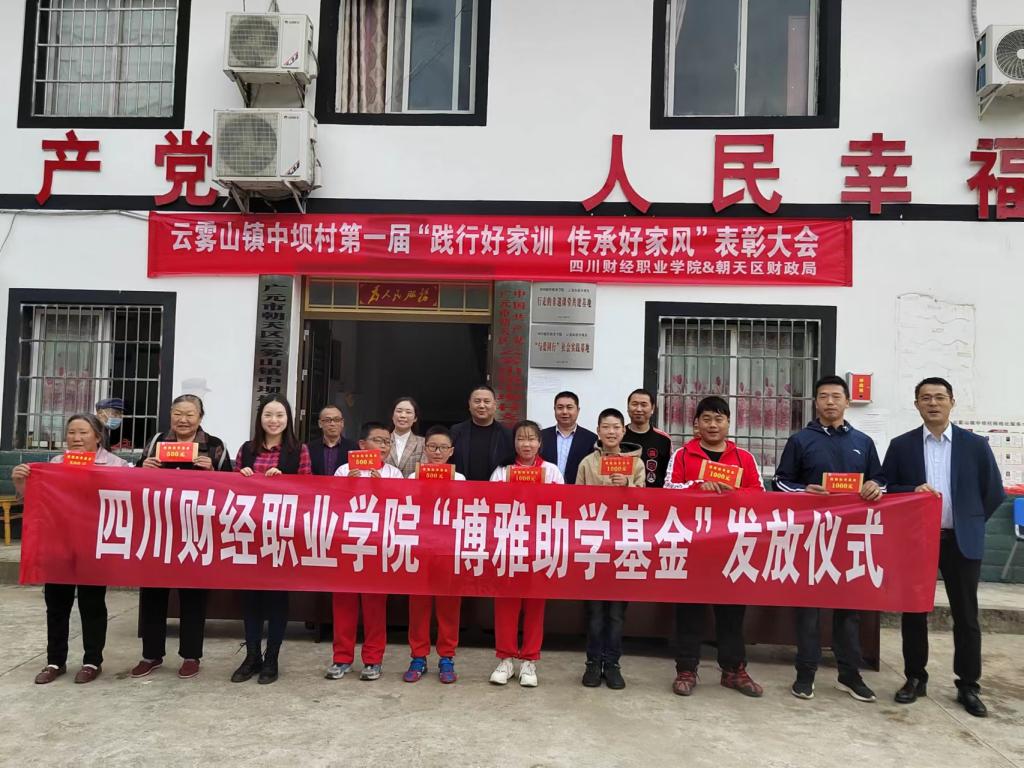 为深入贯彻落实乡村振兴战略,以良好家风带淳朴民风促文明乡风,实现美丽乡村建设与文化振兴同频共振,近日,广元市朝天区云雾山镇中坝村首届“践行好家训 传承好家风”表彰大会暨“四川财经职业学院博雅助学基金”发放仪式举行。