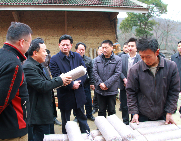 在韩家村一组村民赵思龙家,十几个村民正热火朝天地进行冬菇菌种装袋,蔡邦银一行与老乡们亲切地攀谈起来。在得知韩家村几乎家家户户都在发展香菇,且初具规模时,蔡邦银非常欣慰。他表示,相关部门和乡镇要坚定不移地引导群众大力发展香菇产业,探索“冬菇+夏菇”的产业发展模式,采用“专合组织+农户”经营模式,切实增加群众收入。