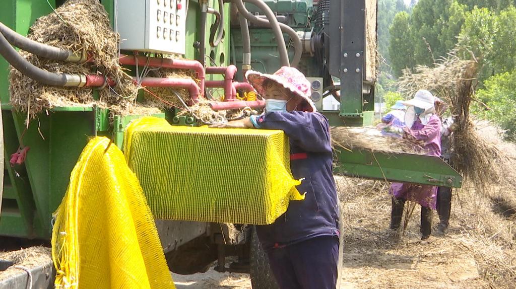 连日来,羊木镇金台社区、东山村公路沿线一派忙碌景象,村民们正忙着将堆放在路边的秸秆送入打包机料斗,经过粉碎、压缩后,散乱的秸秆堆变成了一个个方形的秸秆捆。