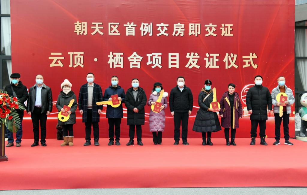 “今天刚交房,我们就拿到了不动产权证,太高兴了!”12月9日,在朝天区首例“交房即交证”——云顶·栖舍项目发证仪式现场,业主代表杨晓华一手拿着新房钥匙、一只手拿着大红色的不动产权证书,激动不已,“交房即交证”让他切切实实感受到了收房的幸福感。