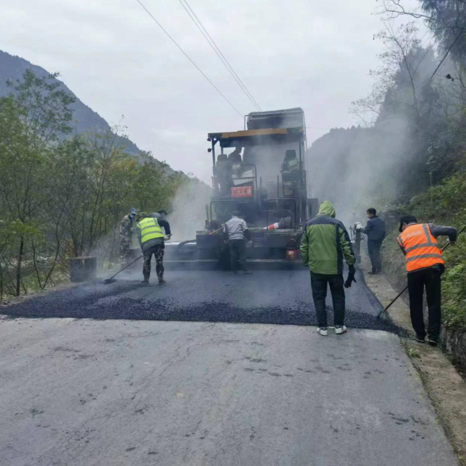在 S410 朝天过境段的项目施工现场,工人们正在铺筑路面,现场机器轰鸣,运料机有序往返、将沥青料倾泻在路面上,一幅建设正酣的生动场景。