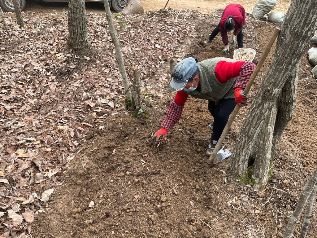 整土、播菌种、覆土……3月29日,在朝天区两河口镇大尖山笋用竹产业基地内,10多名当地群众正在忙着种植赤松茸,大家各司其职,一片繁忙的劳作景象。