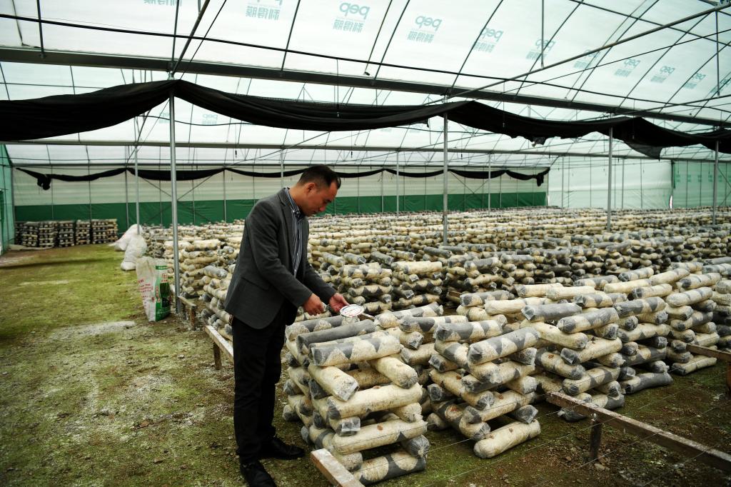 一朵菌菇致富,一个产业兴村。近年来,大滩镇凤凰村以实施乡村振兴为抓手,以打造特色农业产业为主线,以精准监督护航产业发展为保障,大力调整农业产业结构,全面推动食用菌种植和肉牛羊养殖产业发展,带领群众通过土地流转、就近务工等方式稳定增收,让群众共享产业发展红利,走出了一条“产业兴旺、村强民富”的乡村振兴路子。目前,凤凰村有标准化食用菌种植基地10000平方米,年生产食用菌20余万袋,2022年,该村被省农业农村厅评为全省合并村集体经济融合发展试点先进村。(冉金鹭·文 刘旭·图)