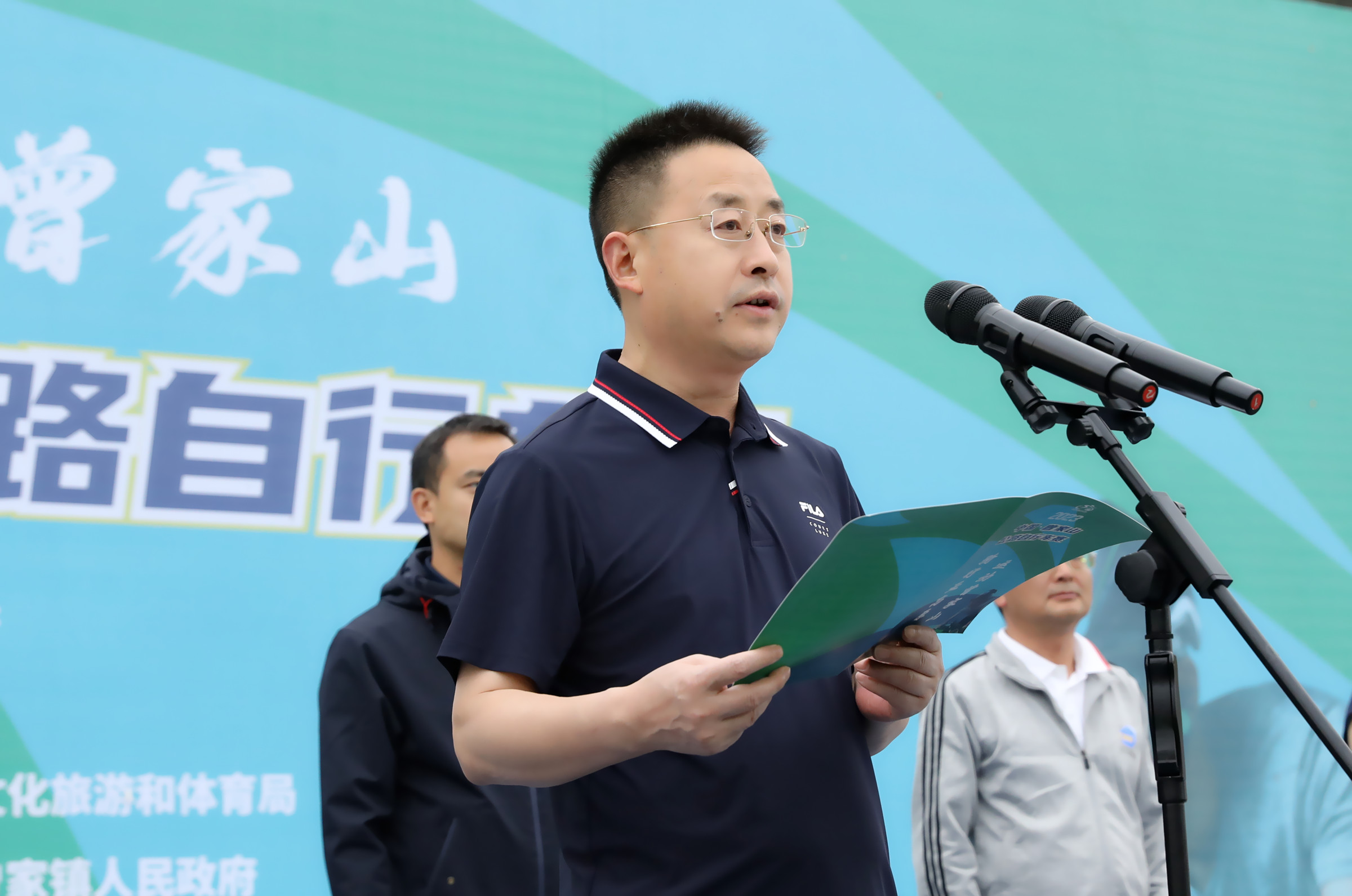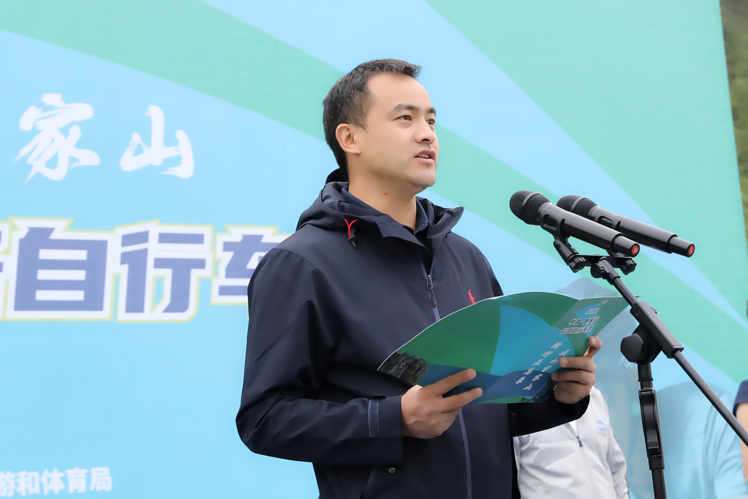 余飞宇在致辞中向出席活动的各位领导、各位嘉宾、全体参赛选手表示热烈的欢迎。他说,近年来,朝天区坚持“绿水青山就是金山银山”的发展理念,依托曾家山良好的生态资源优势,主动把体育融入大生态、大健康格局,努力“唱好山字经,打好体育牌”,强力推进“体育+”持续健康发展,建成了一大批体旅融合精品项目,成功举办了一系列大型赛事活动。当前,正加快创建曾家山国家级旅游度假区、国家体育旅游示范基地,此次2023中国·曾家山公路自行车赛必将为曾家山增强软实力、丰富文旅产品、推动“体育+”融合发展、加快全域旅游建设发挥重要推动作用,也将为朝天区文体旅游产业实现大发展大繁荣,推动朝天提升知名度、影响力发挥巨大的桥梁和纽带作用。他希望各位参赛选手充分演绎“更高、更快、更强”的体育精神,赛出风格、赛出水平、赛出友谊;广大裁判员秉公执法,客观评判,确保赛事公正公平。