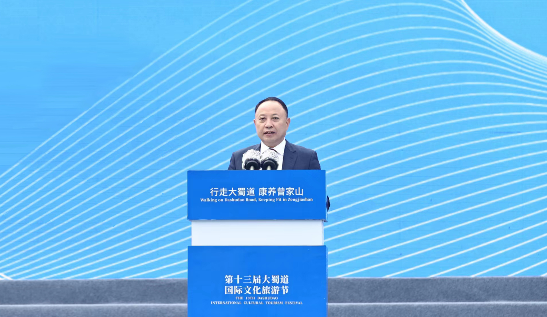 祝善忠在演讲中代表联合国世界旅游组织,向活动的成功举办表示衷心的祝贺,向出席活动的嘉宾朋友表示诚挚的问候。他表示,广元绿水青山,生态宜居,用绿水青山敲开了经济发展大门,走出了一条生态美、百姓富的绿色发展之路。曾家山就是广元将文旅资源优势转化为产业发展优势的一个缩影,做大做强文旅康养产业,曾家山大有可为。联合国世界旅游组织将在宣传川蜀旅游、推介广元旅游产品等方面给予支持,为促进四川、推动广元的文化旅游产业高质量发展贡献力量。