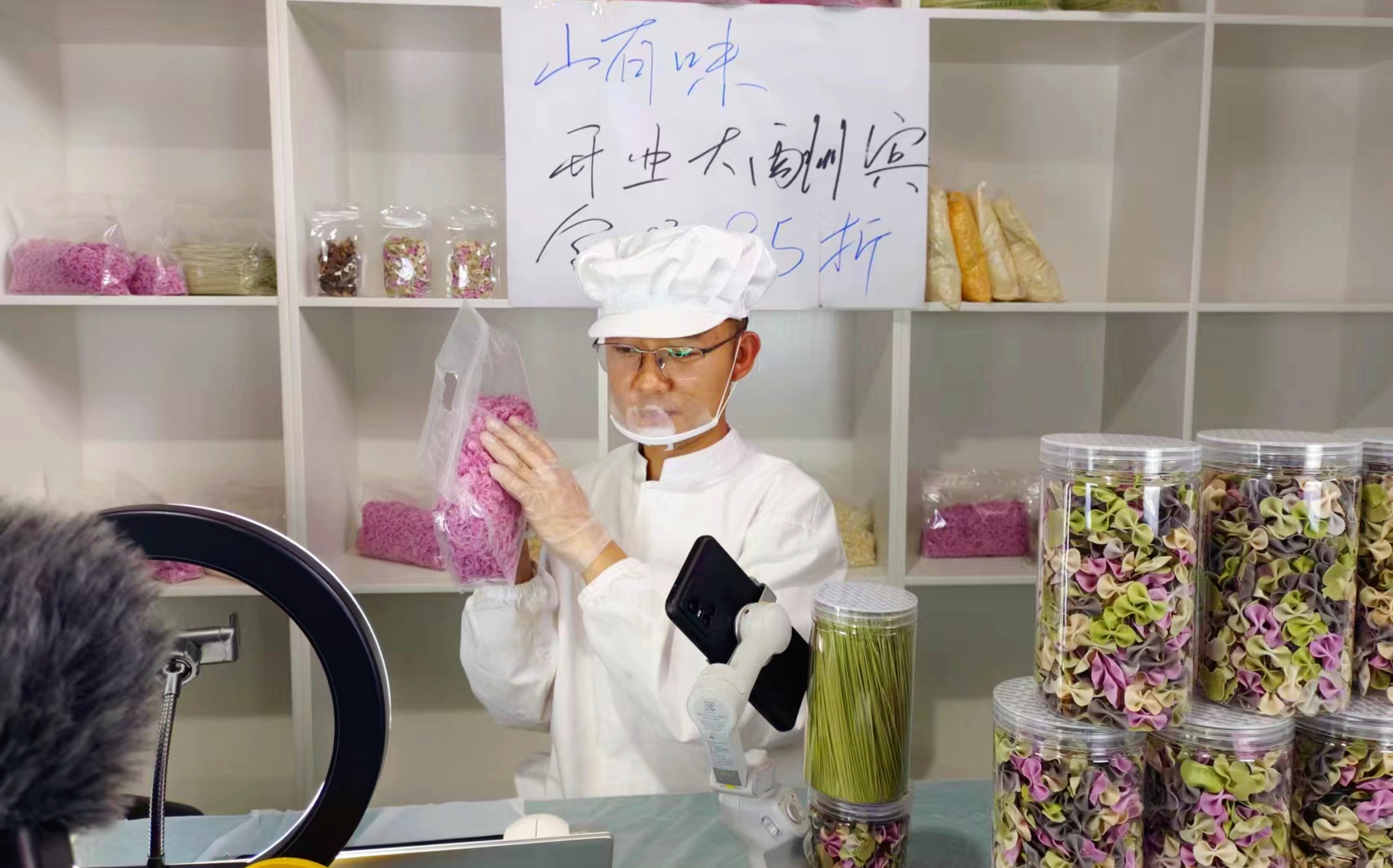 “我们公司生产的‘山有味’系列面条,在和面时加入曾家山原产的有机蔬菜汁,和成不同颜色的面团,继而压成面条,颜色多样,营养健康,不仅有各种蔬菜直面,也有适合小朋友的蝴蝶面和卡通面等。”王嘉睿介绍,初期,公司生产的面条主要在本地农家乐、广元市及周边区县的超市、餐厅销售;现在,按照“农户+车间+电商”思路,通过抖音平台带货直播,已经打开了更广阔的市场。
