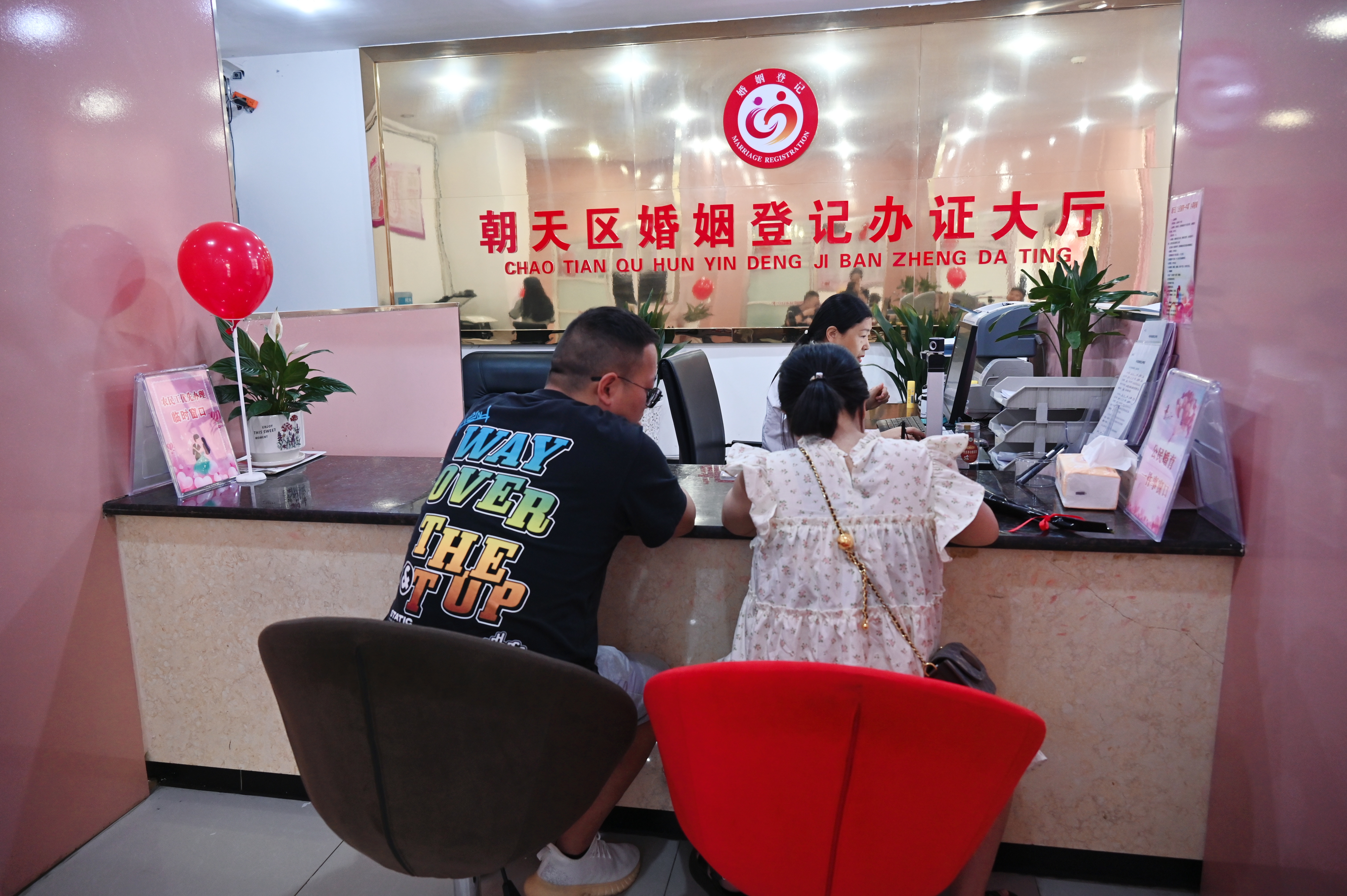 朝天区民政局婚姻登记处负责人陈晓琼介绍,今年,婚姻登记处精心策划并开展了主题为“为你而来·朝结良缘”5.20婚恋活动,并通过提前开通网上预约登记、电话咨询,现场设置咨询引导员,实行提前到岗、延时下班,赠送鲜花,免费拍照等措施,最大限度满足新人们的登记需求,让新人们能在“最有爱的日子”顺利快捷领取通往幸福大门的“通行证”,整个流程5分钟左右就能办结。