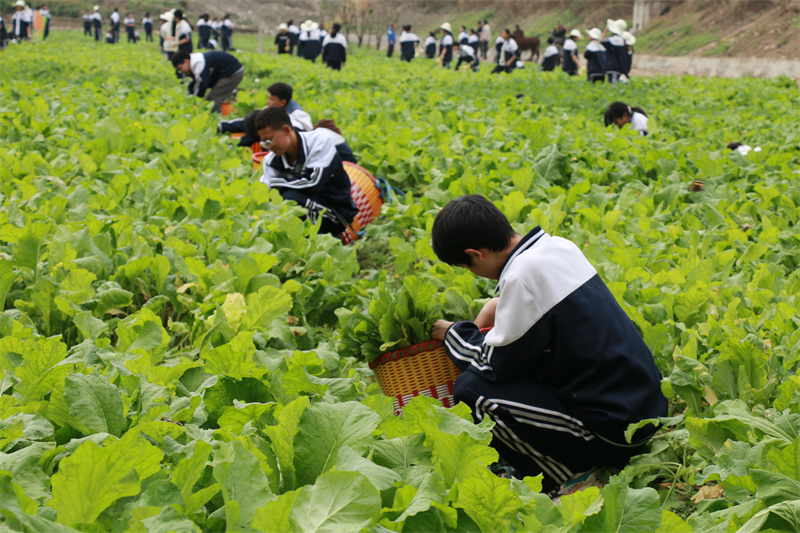 同学们在广元市朝天区羊木镇新时代文明实践基地参与劳动实践