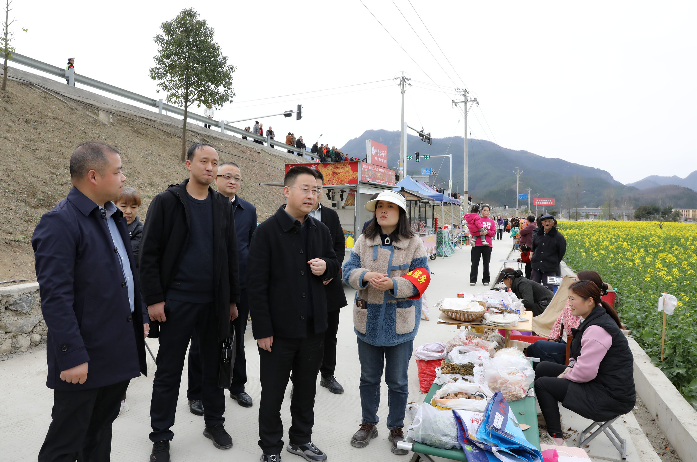 阳春三月,羊木镇东山村油菜花盛开,吸引了众多游客,当地将油菜花田与文旅结合,催生了油菜花经济,游客赏花体验田园乐趣带动了相关产业,村民们出售农特产品增收,油菜花经济成为推动乡村振兴的新动力。来到羊木镇东山村油菜花基地,余飞宇详细了解了基地的种植规模、旅游接待情况以及带动村民增收的具体措施。他指出,农旅融合发展是乡村振兴的重要途径之一,要进一步挖掘乡村资源潜力,打造具有地方特色的乡村旅游品牌。要加强基础设施建设,提升旅游服务质量,为游客提供更加舒适便捷的旅游体验。相关部门要加强监管,确保小商贩售卖的农产品和小吃质量安全可靠,为游客提供一个安全、放心的旅游环境,进一步推动羊木镇东山村的农旅融合发展,赋能乡村振兴。要加强指导,选好品种,通过错时开花等技术手段,延长油菜花的观赏期,吸引更多游客前来观赏,进一步推动农旅融合发展。镇村要做到整齐规范、科学管理,提升游客的游览体验,同时要加强市场营销,提高油菜花基地的知名度和影响力,吸引更多游客前来体验田园乐趣,带动相关产业发展,为乡村振兴注入新的活力。