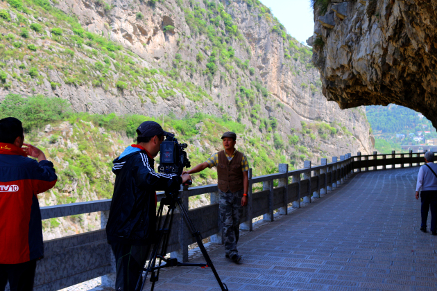 (贾志金 谢翀)4月20日至25日,中央电视台科教频道《地理·中国》栏目组编导张磊、现场节目主持人胜春等一行四人和西南民族大学教授刘开榜及相关地理学专家一行三人在明月峡景区拍摄地理科教纪录片。