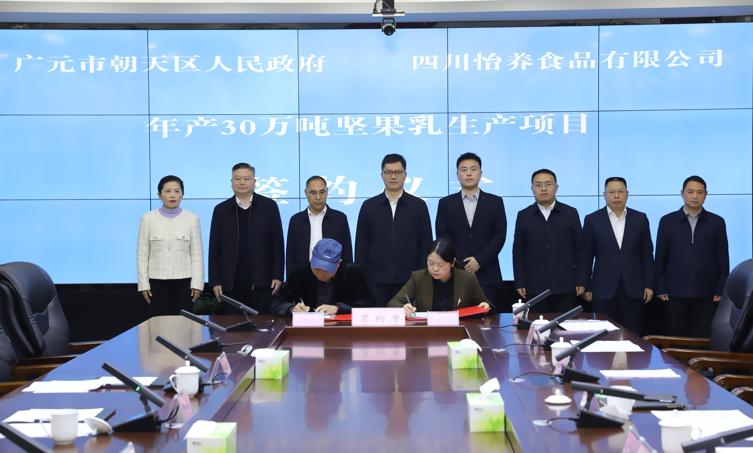 3月30日上午,朝天区年产30万吨坚果乳生产项目签约仪式举行。区委书记郭祖炎出席并讲话,区委副书记、区长李磊主持仪式。四川怡养食品有限公司董事长干晓春,总经理干镇豪,法律顾问程晓;区人大常委会主任张开翅、区政协主席薛长勋出席签约仪式。